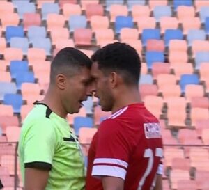 وقبل نهاية شوط المباراة الأول، وتحديدًا مع الدقيقة 44، حصلت مشادة بين لاعب الوسط غنام محمد مع الحكم محمد عبد العواض الذي حل بديلا لمصطفى الشهدي، وذلك في لقطة أخرى كان بطلها الحكم الحكم محمد عبد العواض، مما جعله يشهر البطاقة الصفراء للاعب فريق مودرن سبورت غنام محمد.