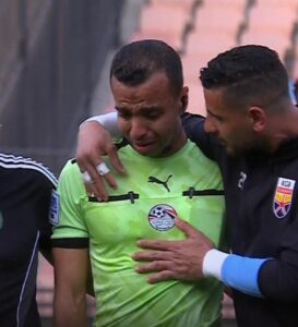 شهدت الدقيقة 22، سقوط حكم المباراة مصطفى الشهدي على أرضية الملعب، واستدعاء الجهاز الطبي له، ومن ثم الخروج من الملعب مصابًا على مستوى الركبة اليمنى، وحل بديلا له الحكم الرابع محمد عبد العواض، لإدارة المباراة واستكمالها.