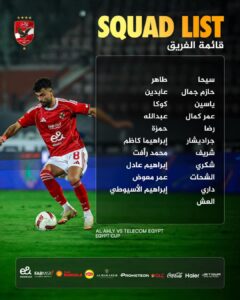 أعلن المدير الفني الدنماركي لفريق الأهلي ييس توروب عن قائمة الفريق لمواجهة نظيره المصرية للاتصالات في بطولة كأس مصر، والتي جاءت على النحو التالي: