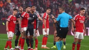 وجاء هدف بنفيكا البرتغالي الرابع في الوقت بدل الضائع عن طريق اللاعب أناتولي تروبين، وحصل ثنائي مدريد راؤول اسينسيو واللاعب رودريجو على بطاقتين حمراء في الوقت بدل الضائع.