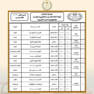 رسميًا.. إعلان جدول الثانوية العامة 2026 ومواعيد بداية ونهاية الامتحانات