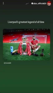 في سياق متصل، نشر اللاعب أحمد مصطفى زيزو عبر صفحته الرسمية على موقع التواصل، صورة للاعب محمد صلاح، مدونا عليها: “أسطورة ليفربول العظيم في كل وقت.”