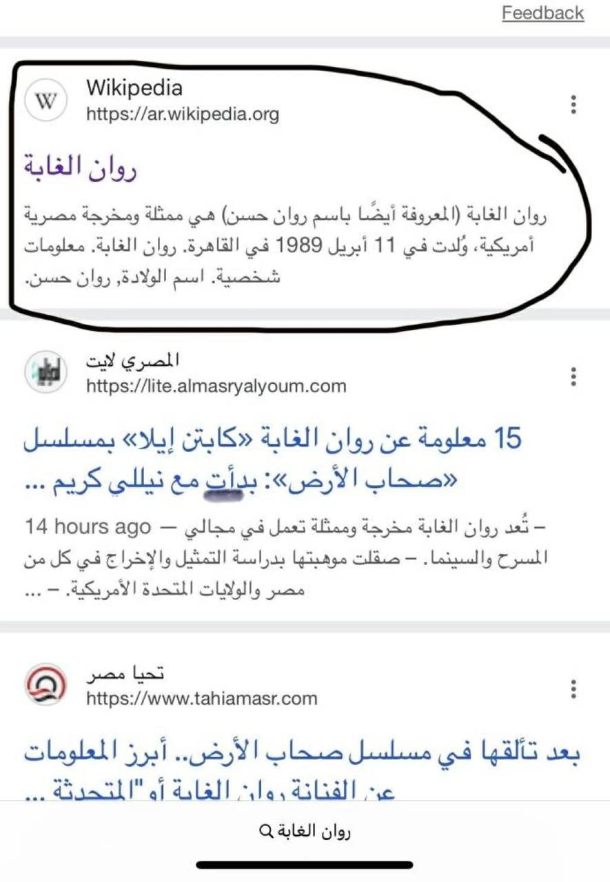 قامت الفنانة روان الغابة ممثلة مسلسل صحاب الأرض، بالتعليق على خبر حذف الملف الخاص بها من موقع المعلومات ويكيبيديا، مؤكدة أن هذا الأمر حدث بالفعل من قبل الصهاينة.