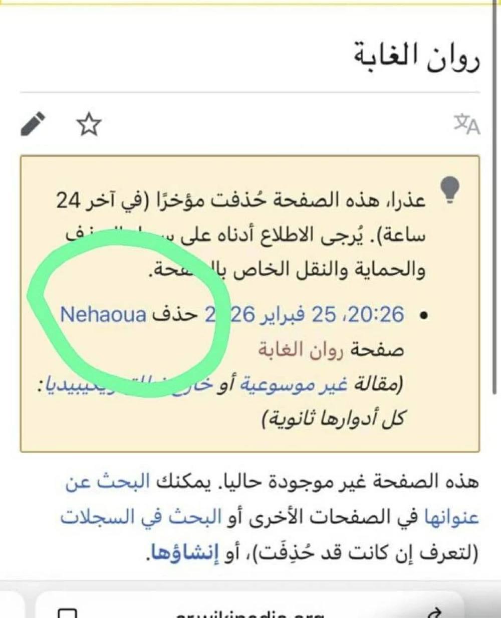 أول تعليق من روان الغابة على حذف ملفها من ويكيبيديا