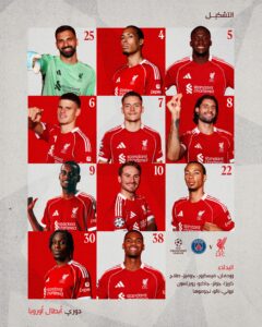 أعلن أرني سلوت المدير الفني الهولندي لفريق ليفربول عن تشكيل فريقه في مباراة الليلة أمام نظيره باريس سان جيرمان الفرنسي، حيث يجلس اللاعب محمد صلاح على دكة البدلاء في مباراة الليلة، وجاء تشكيل الريدز الرسمي لمواجهة باريس على النحو التالي: