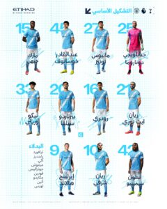 • خط الهجوم: أنطوان سيمينيو، هالاند، ريان شرقي.